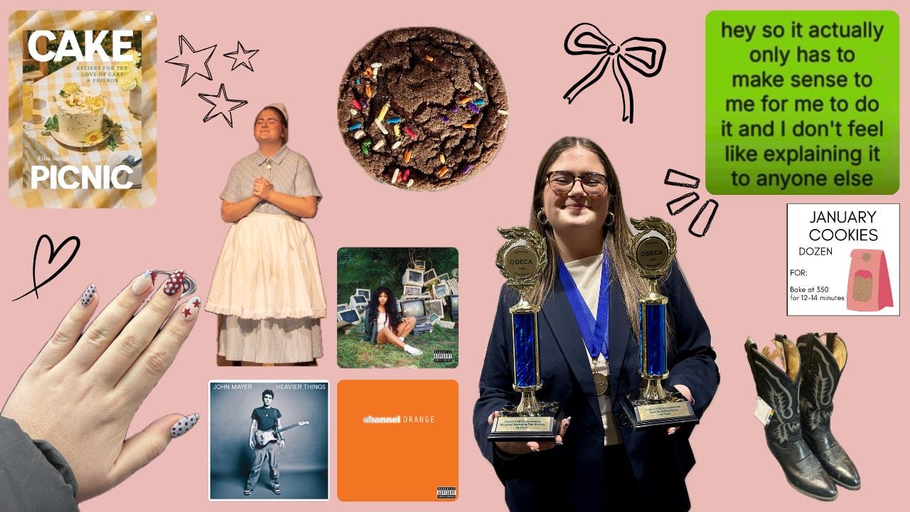 (in case you missed it) Hello hello! The first month of the year felt SO LONG. Is that just me? I feel like I lived a million lives in 31 days! At the beginning of the month, I did tons of reflecting on the past year and thinking about how grateful I am for BBB and the BBB Substack, and I wrote an article about it, so go read here! Then I had lots and lots of rehearsals for the one-act play I was in, which has come to a close, but I am super grateful for the experience. I participated in the Deca District competition and (#humblebrag) advanced in all three events, so I’ll be participating in the State competition this March! Then, I did my usual things, shopping, baking, completing orders, and doing bunches of homework. So here is the recap!
